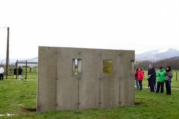 PARETA : Pareta hau zimenduz eraikia da eta munduan eraikitzen diren jendeen arteko pareta guzien metafora dago, izan Mexikon edo Palestinan. Honek bere leihoak ditu, bat zerratua, bestea urre-ilusioz betea, eta eskerrak, hirugarren ttipi estua dago, baina idekia, esperantzari lekua utziz. Abereek aldiz ez dute muga eta hesien arrangurarik, gibelean dauden kabale oinatzak lekuko... Obra honen ezartzeko herriko langile eta laguntzaleek elkarlan ederra eraman zuten, Etxeberri hargingoa enpresarekin. |